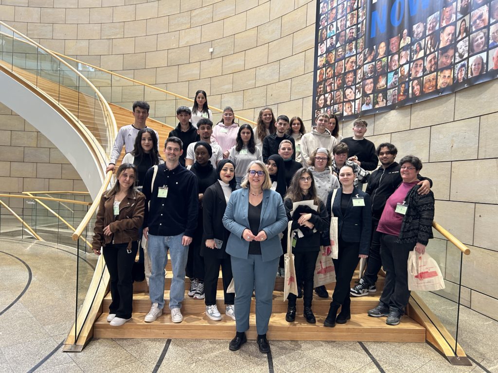 Vor dem Gespräch nahmen die Schüler*Innen am Besuchsprogramm des Landtags teil, in dem sie die Arbeit des Parlaments kennenlernten.