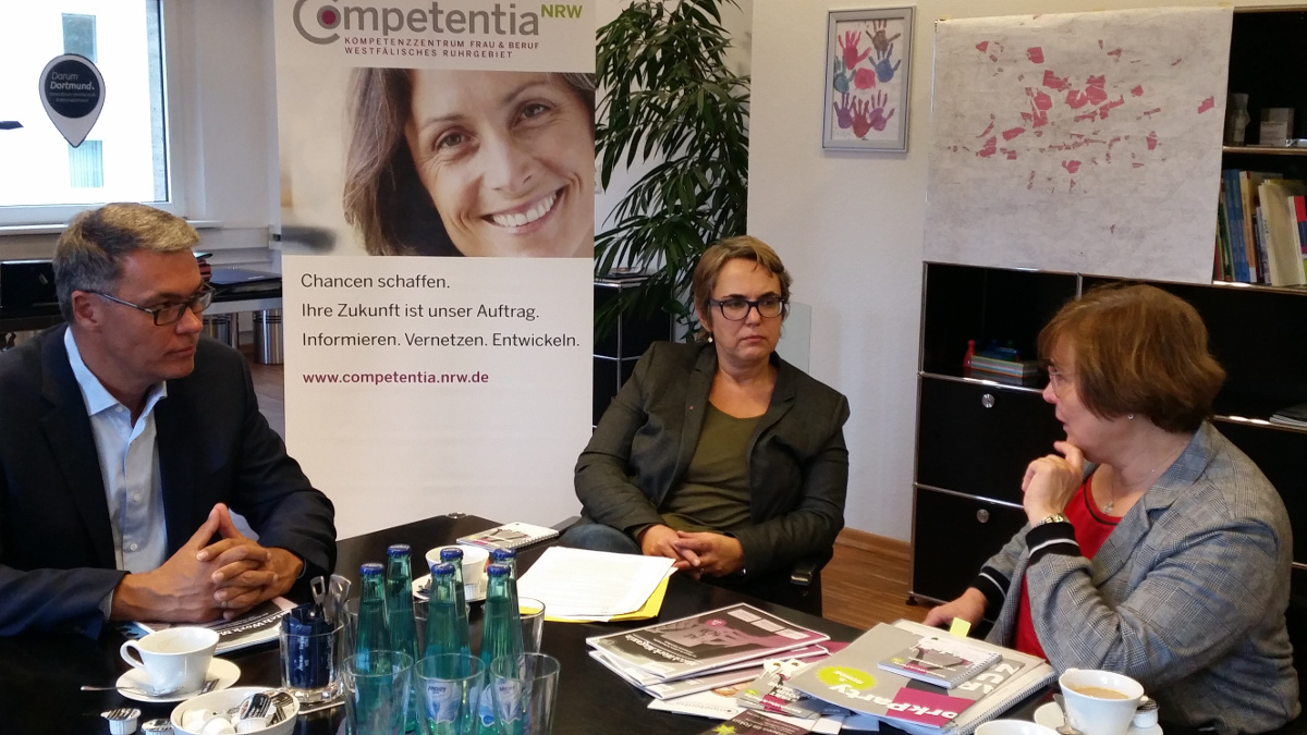 Um im Rahmen meiner Herbsttour einen weiteren Einblick in die Vereinbarkeit von Familie und Beruf und die Erwerbstätigkeit von Frauen zu erhalten, besuchte ich heute das Kompetenzzentrum Frau und Beruf für das Westfälische Ruhrgebiet. Dieses ist bei der Wirtschaftsförderung Dortmund angesiedelt. Das Kompetenzzentrum berät kleine und mittlere Unternehmen bei der Rekrutierung weiblicher Fachkräfte und bei der Gestaltung von Arbeitsstrukturen, die die Vereinbarkeit von Familie und Beruf verbessern. Ziel ist die berufliche Chancengleichheit von Frauen.
