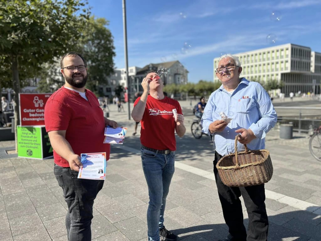 Auch in Dortmund haben wir Flagge gezeigt und über Auswege aus der Bildungs- und Kitastrophe in Nordrhein-Westfalen informiert und diskutiert. Den Auftakt machte am 7. September unser Aktionstag „Chancengerechtigkeit“ in der Katharinenstraße in der Dortmunder City: Was bedeutet Chancengerechtigkeit? Woran scheitert Sie? Und was ist zu tun für ein chancengerechtes NRW? Zu diesen und vielen weiteren Fragen standen meine Dortmunder Abgeordnetenkolleg*innen Nadja Lüders, Volkan Baran, Ralf Stoltze und ich allen Interessierten Rede und Antwort. Weiter ging es am 22. September mit unserem Infostand am Phoenix-See, bei dem mich der SPD-Stadtbezirk Hörde unterstützte.