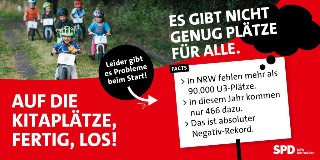 In Kitas und Tagespflege fehlen mehr als 110.000 Plätze in Nordrhein-Westfalen, 90.000 allein in der U3-Betreuung. Doch neue Plätze gibt es kaum noch: Gerade einmal 466 neue Plätze für Kinder unter drei Jahren wurden im Jahr 2024 geschaffen – das ist viel zu wenig und ein neuer Negativrekord.