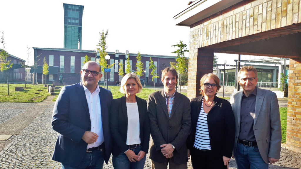 Die Abgeordneten Volkan Baran (l.), Dietmar Köster (r.) und Anja Butschkau (2.v.r.) besuchten bereits im Oktober 2018 das Institut für Gerontologie. Institutsdirektor Prof. Dr. Christoph Strünck und Geschäftsführerin Elke Olbermann stellten die erfolgreiche Arbeit des Instituts vor.