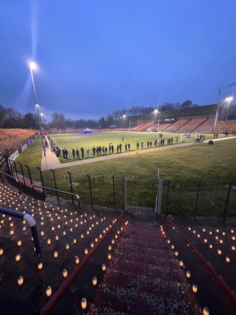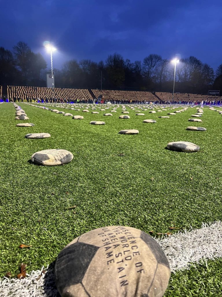 6.500 mit Sand gefüllte Bälle und 20.000 Grablichter, die von Hunderten engagierten AWO-Mitgliedern und AWO-Mitarbeiter*innen aufgestellt wurden, erinnerten an die Toten und machten deutlich: Die FIFA hat den Fußball verraten und verkauft. Profit darf nicht über Menschlichkeit siegen. Menschenleben dürfen nicht für Gewinne geopfert werden.