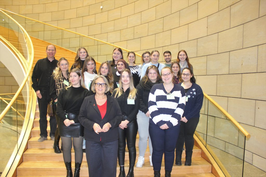 Pressemitteilung: Schüler*innen des Robert-Schuman-Berufskollegs, die eine kaufmännische Ausbildung im Gesundheitswesen machen, besuchten den nordrhein-westfälischen Landtag in Düsseldorf.