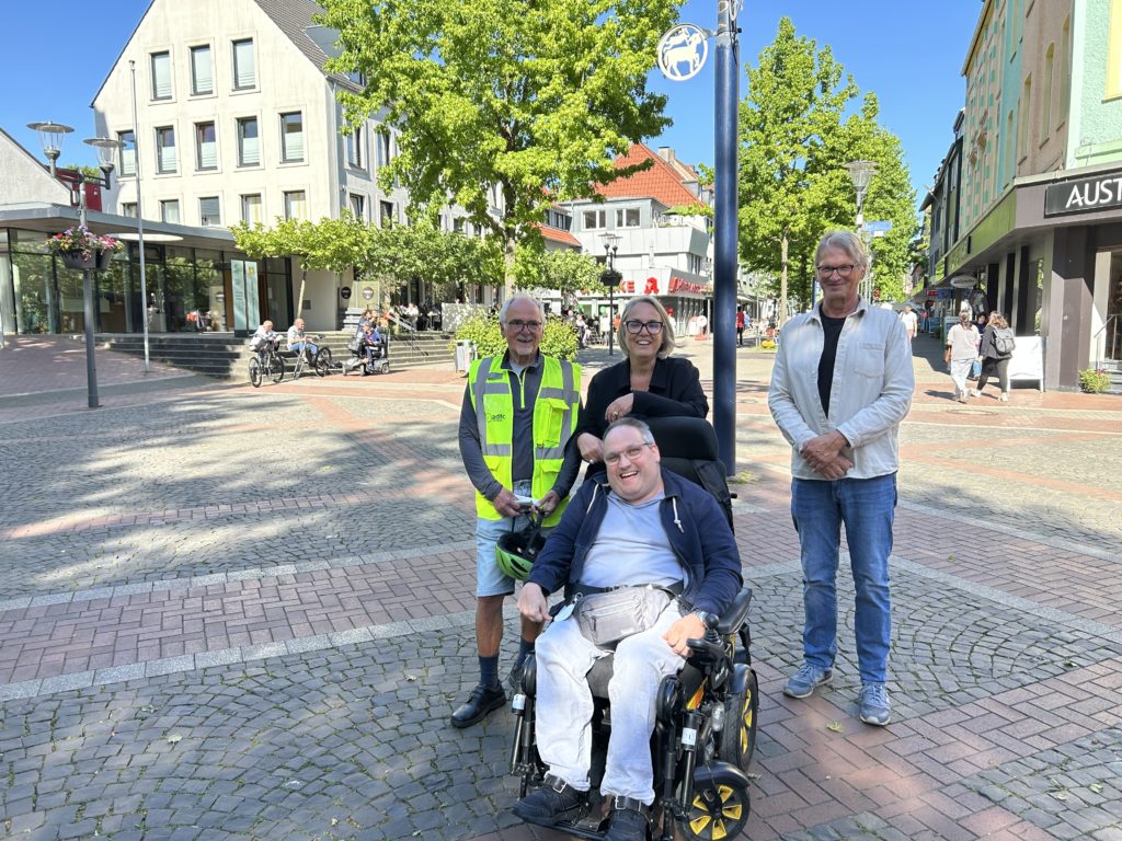 Von Thorsten Speckmann, Vorsitzender des Werkstattrates der AWO-Werkstätten ließ sie sich erklären, mit welchen Barrieren Menschen mit Behinderungen bei alltäglichen Erledigungen kämpfen müssen, z.B. bei Einkäufen oder Arztbesuchen im Hombrucher Stadtbezirkszentrum.