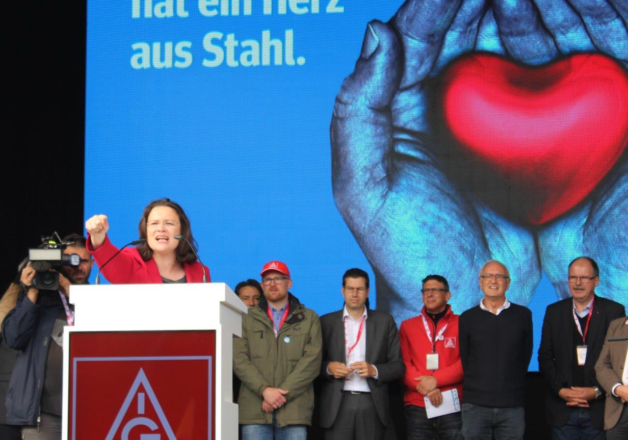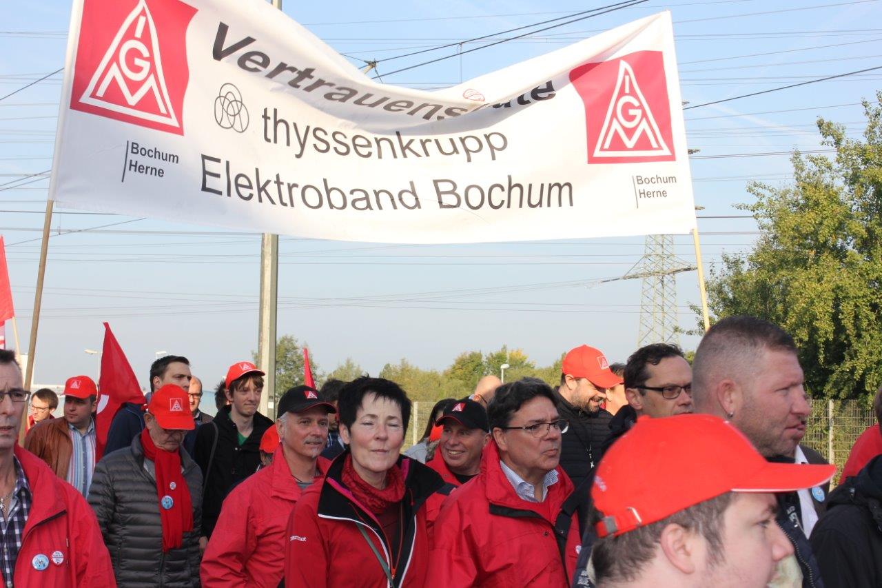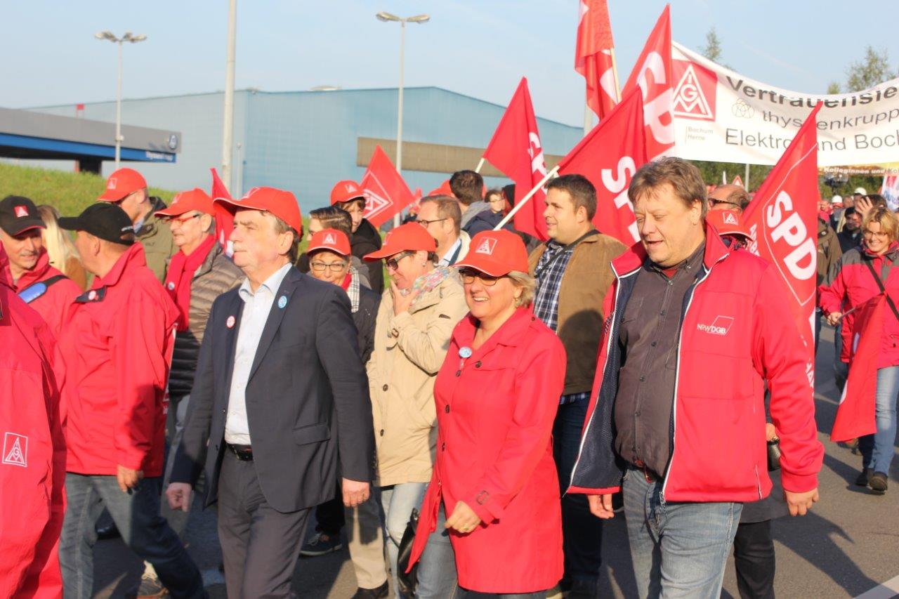 Am heutigen Freitag habe ich mit vielen anderen SPD-Landtagsabgeordneten an einer Demonstration in Bochum, zu der die IG Metall und der Konzernbetriebsrat aufgerufen hatten, teilgenommen. Konzernbetriebsratschef Willi Segerath und Bundesarbeitsministerin Andrea Nahles haben klar gemacht, was auf dem Spiel steht: Tausende Jobs und die Schicksale dahinter, die Zukunft der Montanmitbestimmung und die Zukunft der Standorte. Die Stahlwerke in Deutschland schreiben alle schwarze Zahlen – Stahl hat Zukunft. Nun sollen aber die Arbeiterinnen und Arbeiter das ausbügeln, was das Management mit seinen gescheiterten Auslandsinvestitionen in den Sand gesetzt hat.